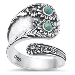 FLORAL STERLING SILVER SPOON RING + GENUINE TURQUOISE
